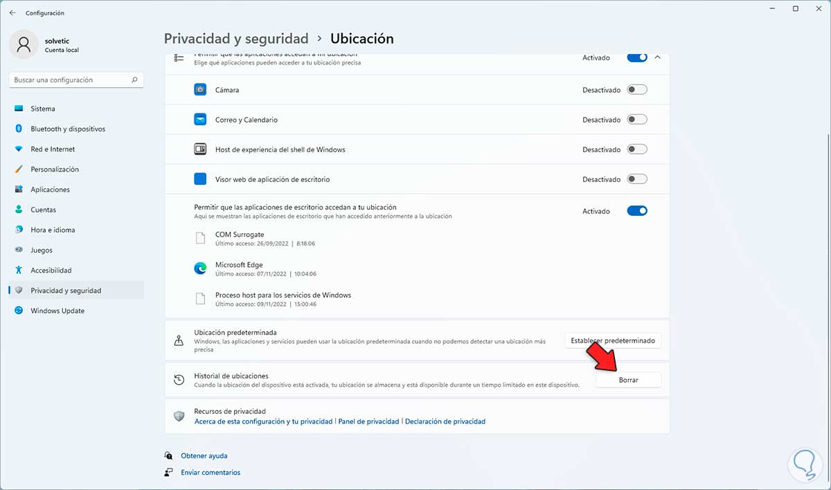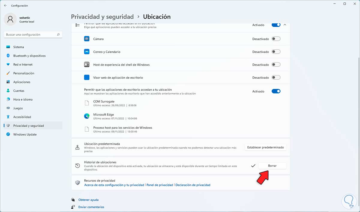 Es otro de los puntos de critica en Windows 11 pero al activar la ubicación para el sistema o para las aplicaciones se guardara localmente cache para facilitar el acceso a la ubicación.