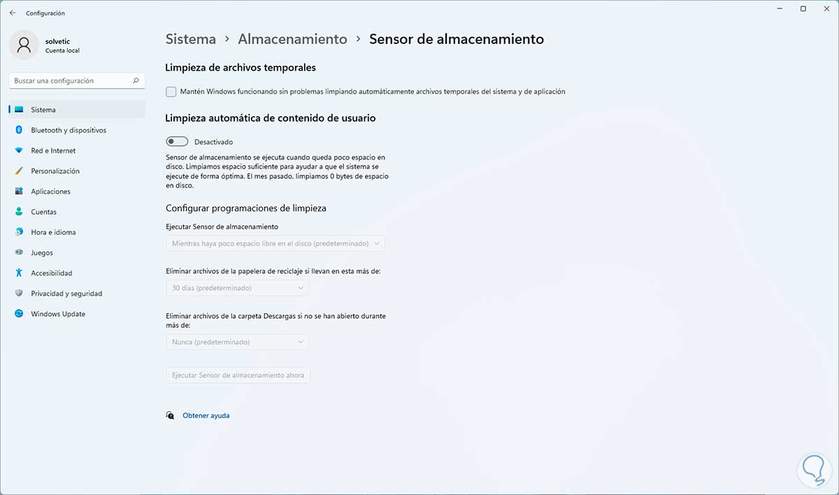 8 Liberar Memoria Caché Windows 11 usando el Sensor de almacenamiento