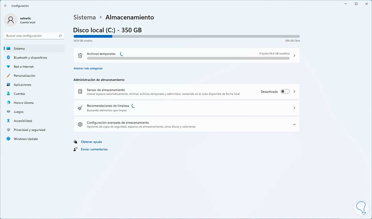 Esta es una herramienta integrada en Windows 11 con la cual se busca administrar de forma inteligente el espacio del disco duro borrando diversos archivos y administrando las Bibliotecas.