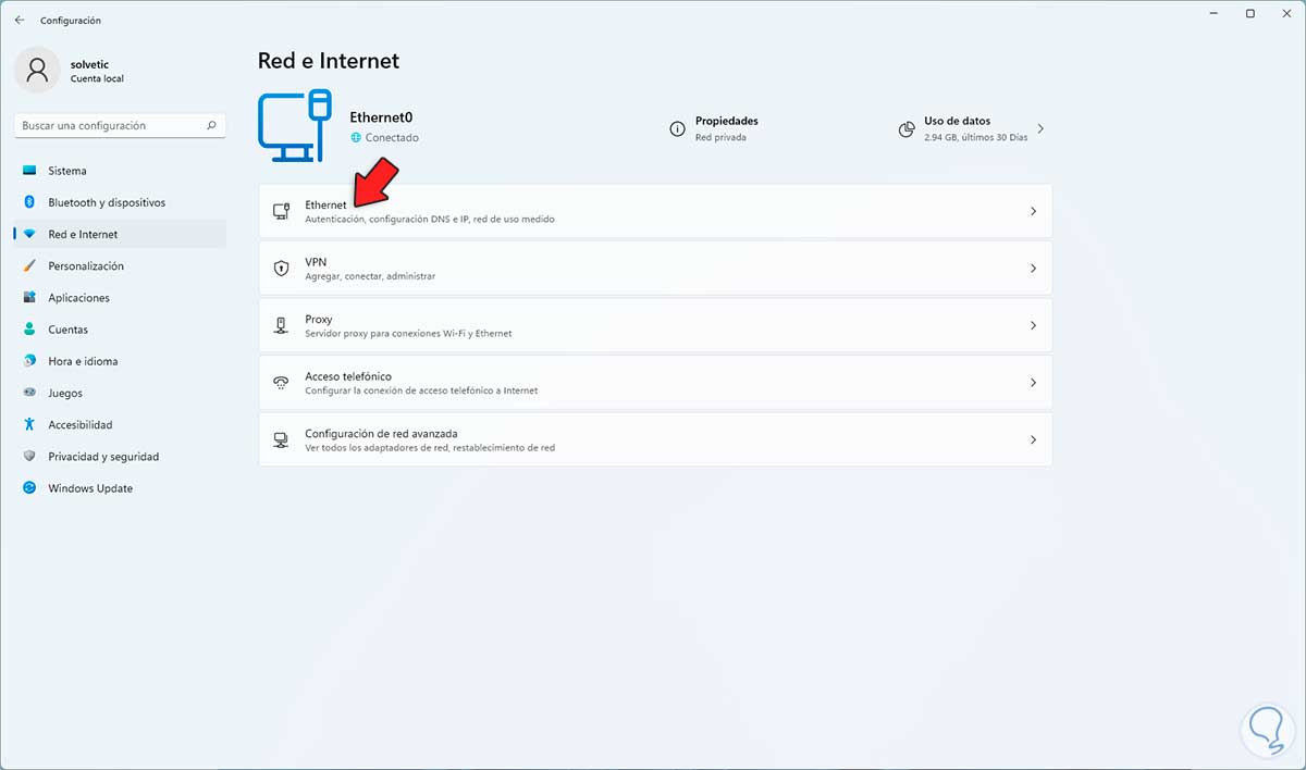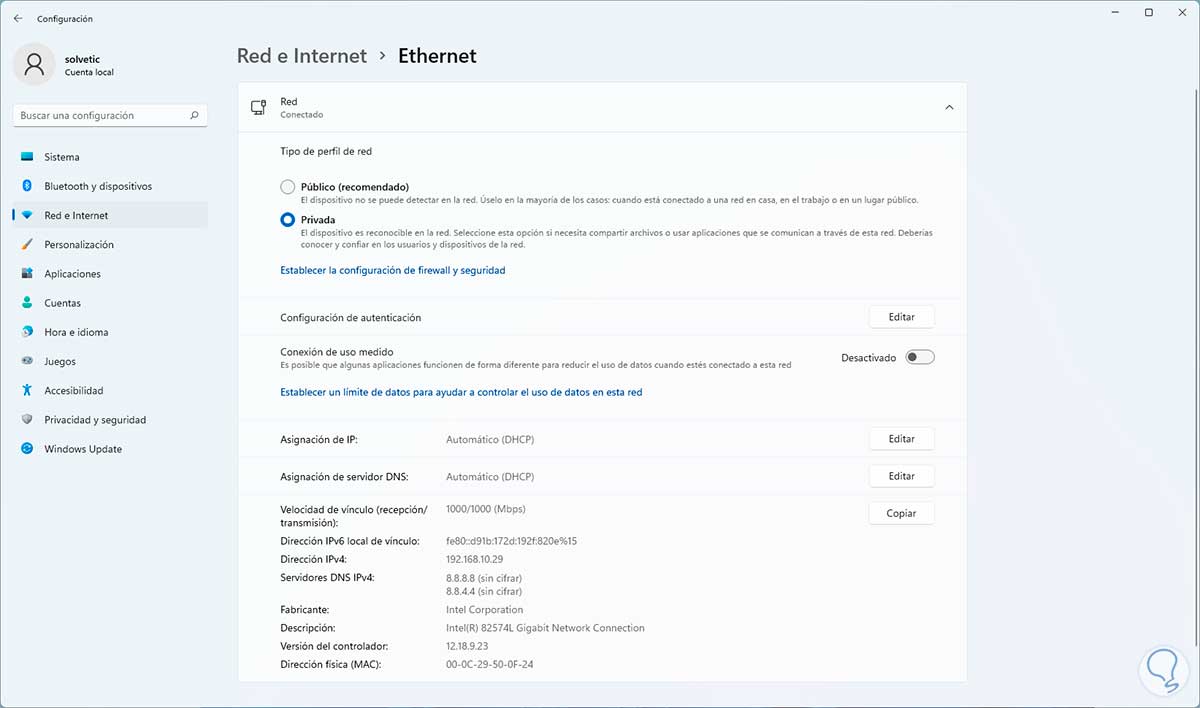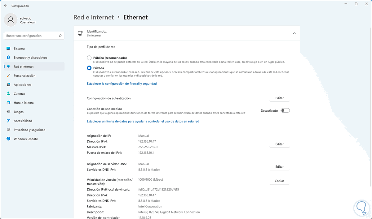 Esta es otra opción para asignar una dirección IP estática en Windows 11.