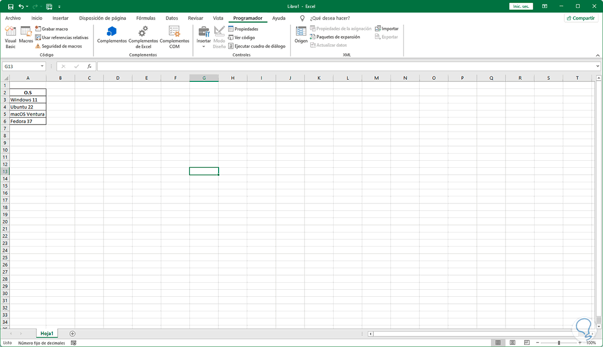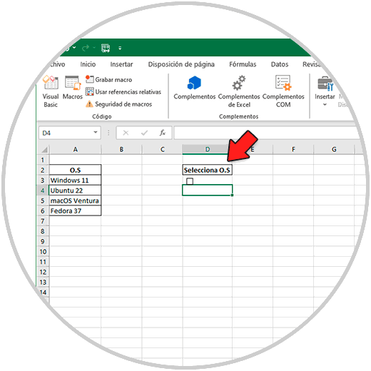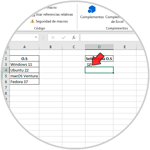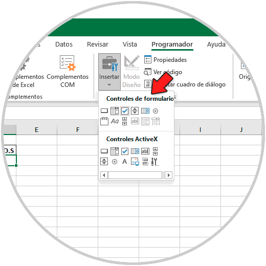 Después de esto seleccionamos la celda donde ira la casilla de chequeo y en el menú "Programador" veremos algunas opciones especiales: