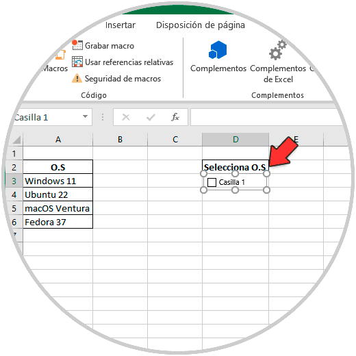 Allí damos clic en "Insertar - Casilla (control de formulario)":
