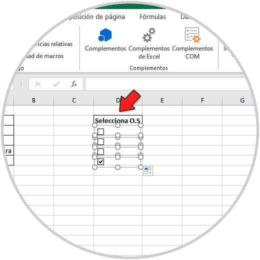 Para borrar las casilla de chequeo, vamos a seleccionar la primer casilla y con la tecla Ctrl copiamos las demás: