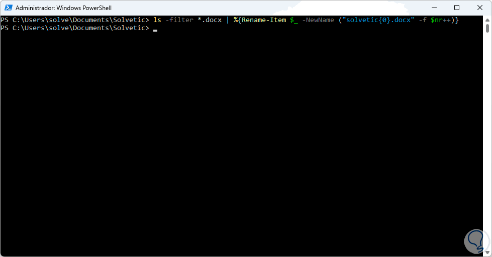 Para renombrar múltiples archivos ejecutamos la sintaxis: