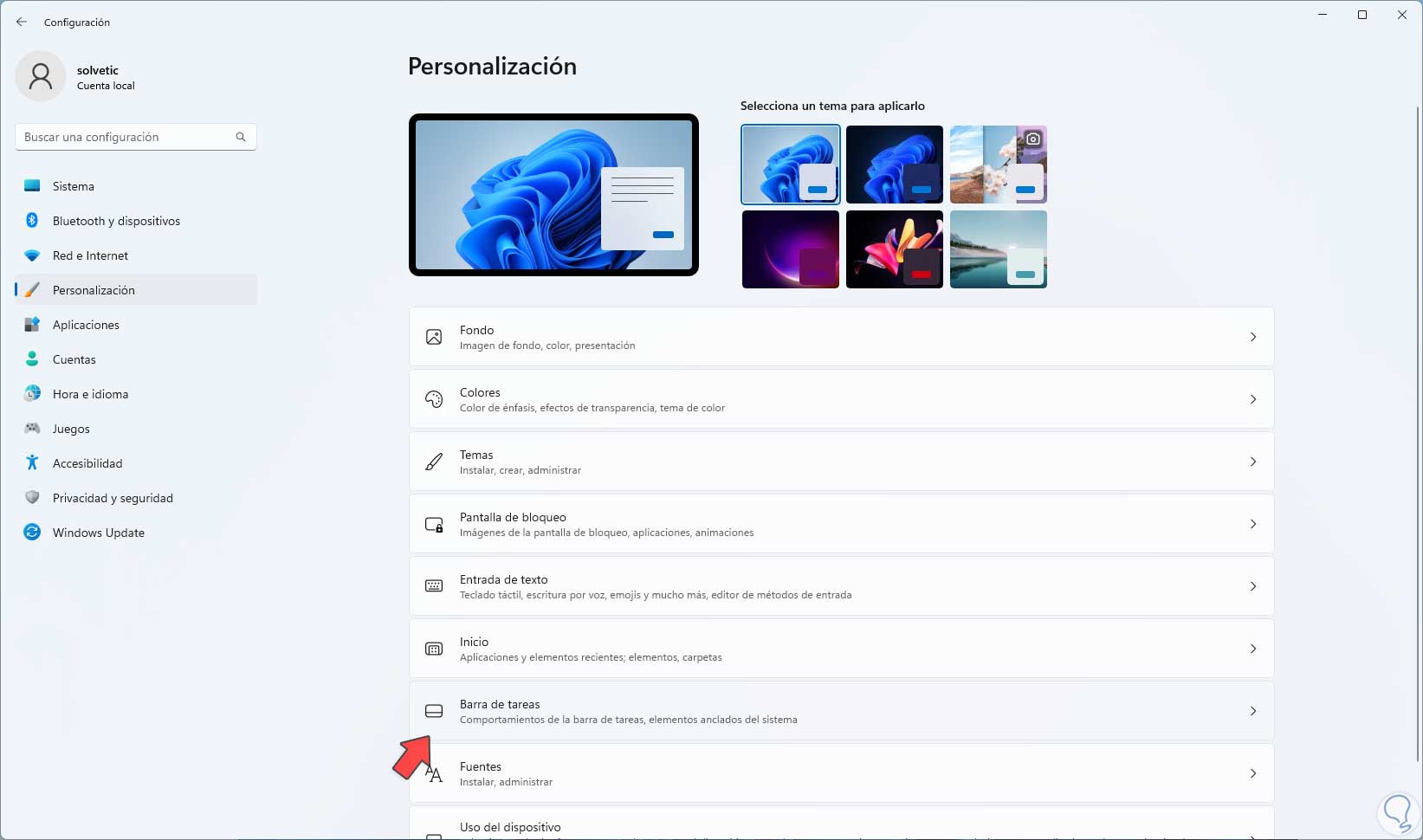 - Barra de tareas