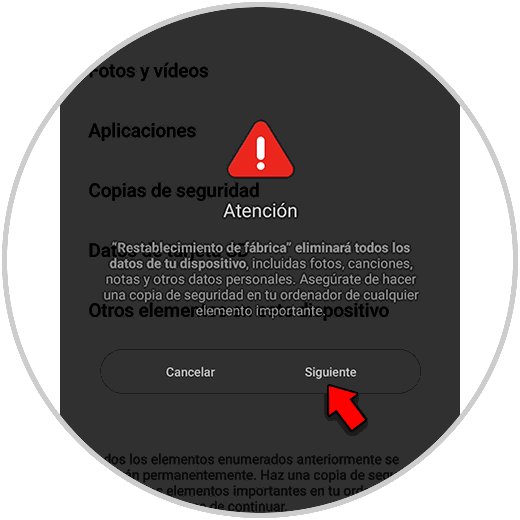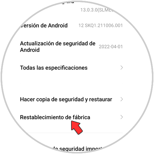 Lo siguiente que debes hacer es entrar en “Restablecimiento de fábrica” en la siguiente pantalla.