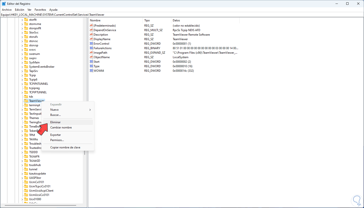 2 Cómo eliminar un Servicio Windows 11 desde Editor de registros