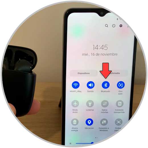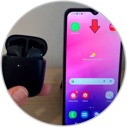 Para esto, el estuche de los cascos debe encontrarse físicamente cerca del terminal móvil. Abrimos el estuche de carga con los auriculares dentro.