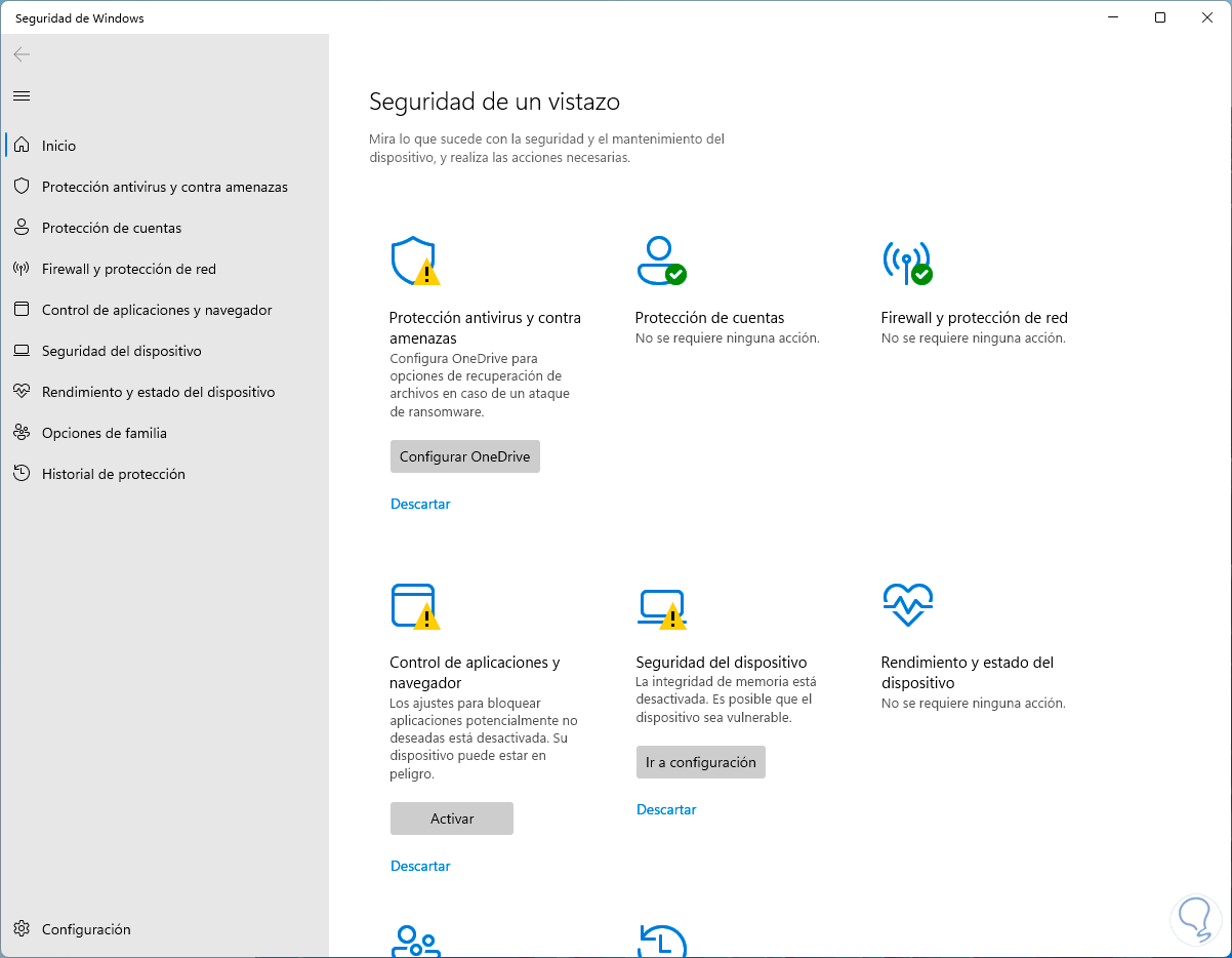 Abre Seguridad de Windows para ver la consola de gestión: