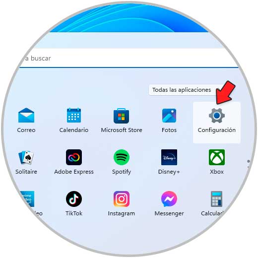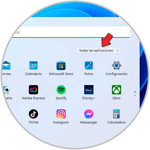 Pulsamos en el botón de Windows y luego damos clic en "Todas las aplicaciones":