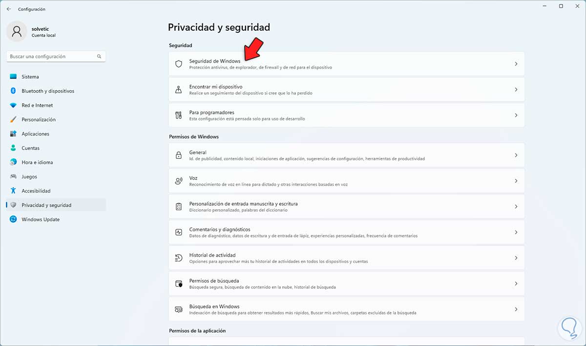 Luego iremos a “Privacidad y seguridad - Seguridad de Windows”: