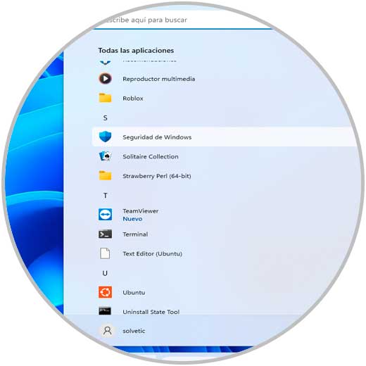 Allí buscamos y abrimos Seguridad de Windows: