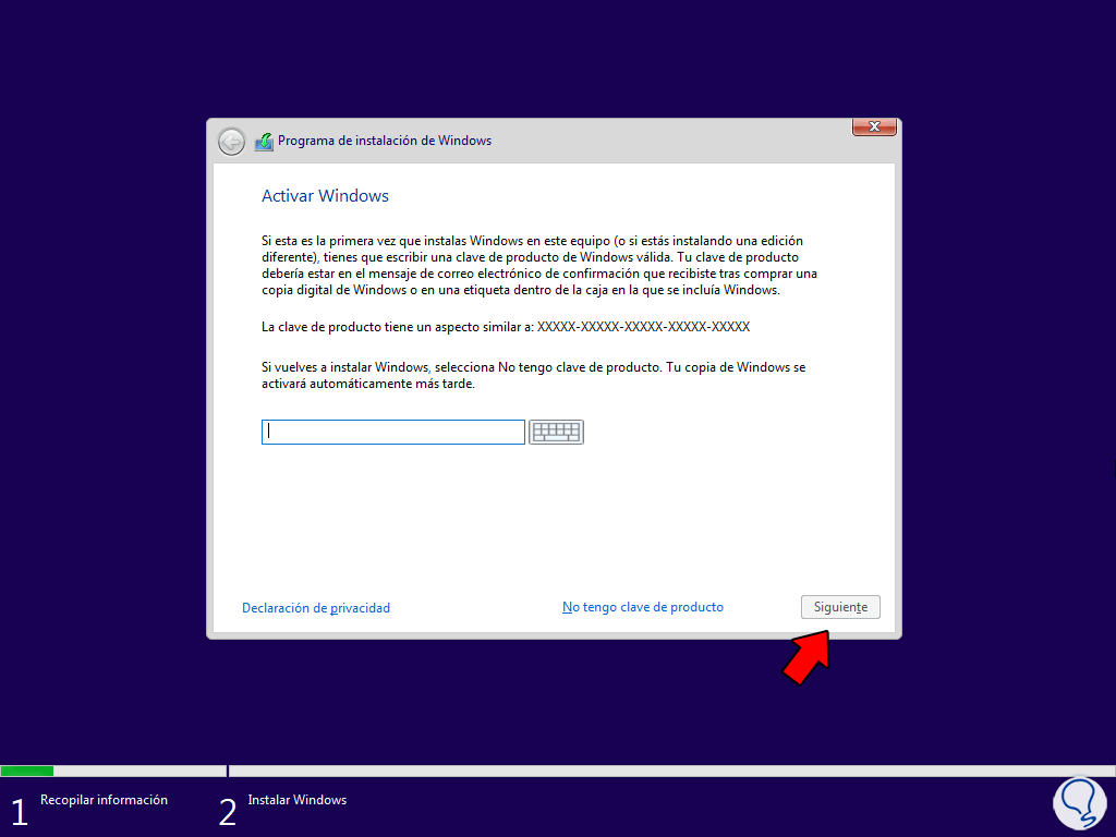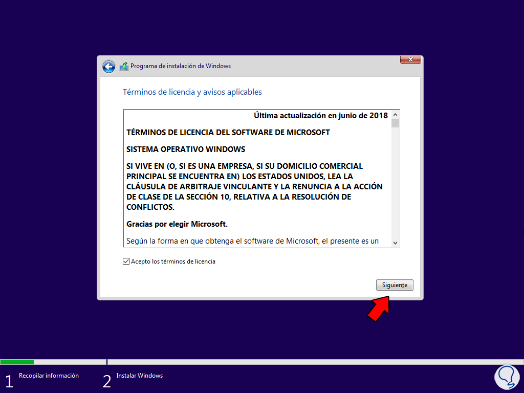 En este caso usaremos Windows 10, vemos la pantalla de instalación. Damos clic en “Siguiente” para ver esto: