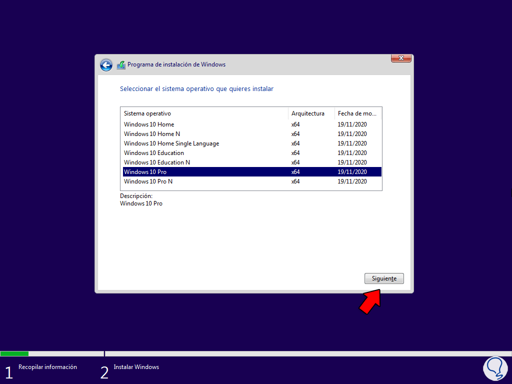 Seleccionamos la edición de Windows a instalar: