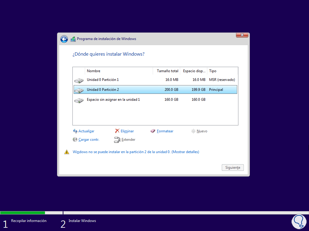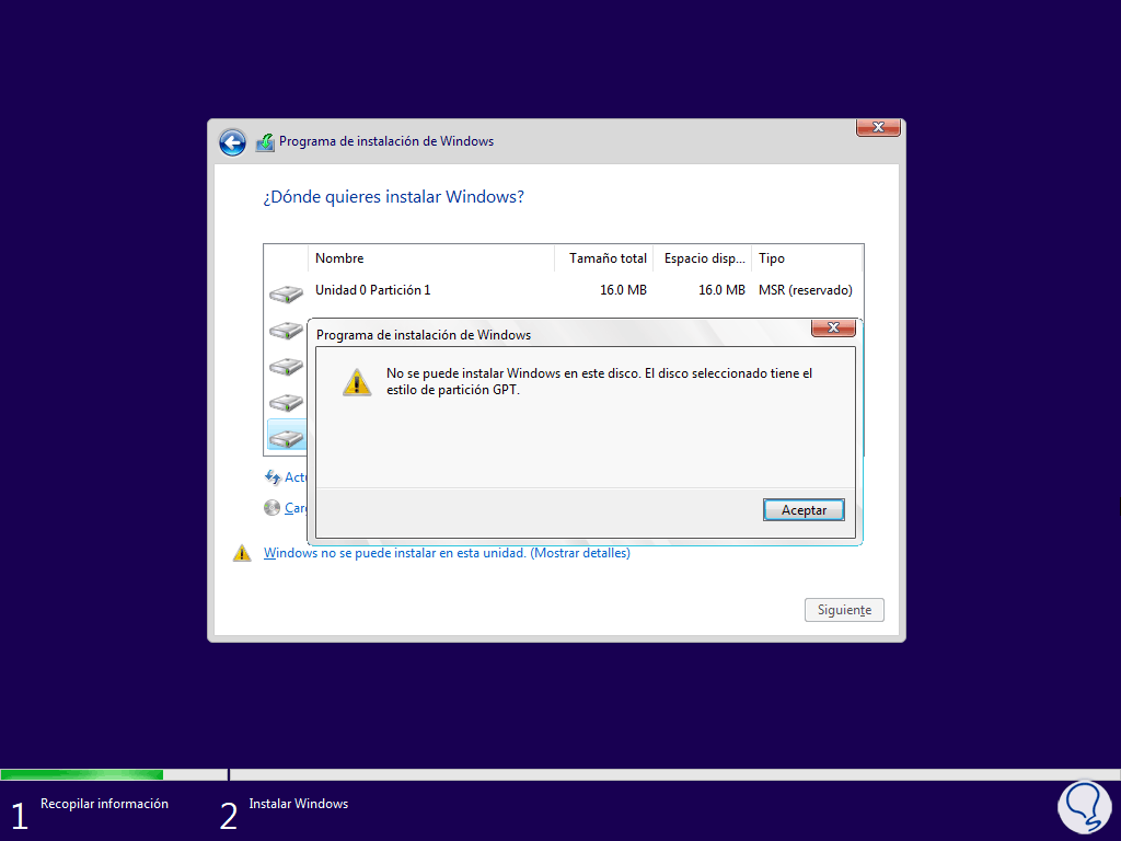Solucionar No se puede instalar Windows en este disco