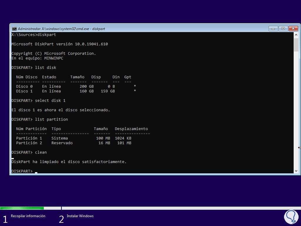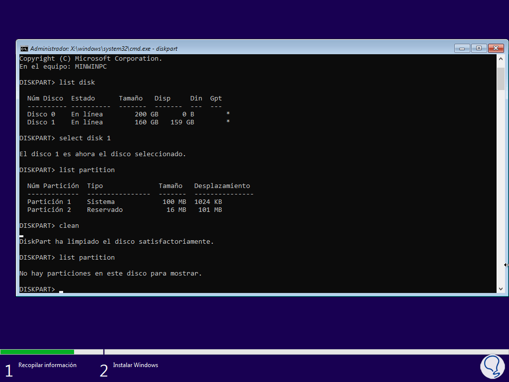 Limpiamos el disco usando el comando:
