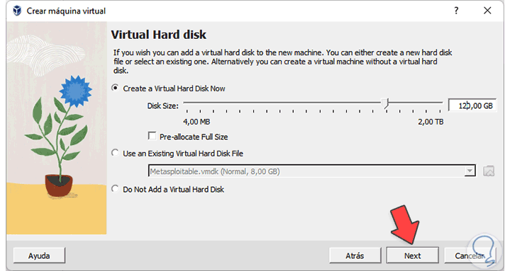 En la ventana emergente asignamos un nombre a la máquina virtual y definimos donde se alojará: