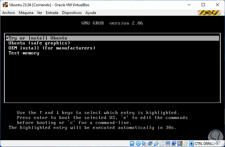 Veremos lo siguiente. Selecciona "Try or Install Ubuntu"
