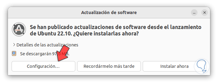 Antes de todo Solvetic explicara algunas configuraciones que son ideales de gestionar para que el sistema reconozca la versión de desarrollo de Ubuntu 23.04, en primer abrimos Actualizaciones de software: