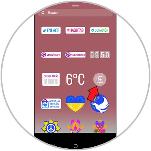Ahora añade una imagen a la portada que debes tener ya guardada en la galería. Para esto, pulsa en el icono de “Stickers” y selecciona “+” (añadir imagen). Coloca la imagen en la portada del Reel.