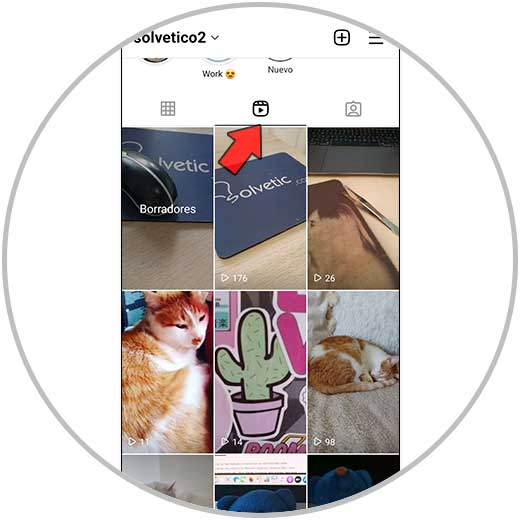 Desde tu perfil de Instagram pulsa en el icono de Reels. Una vez hecho, pulsa sobre el Reel en el que quieres editar la portada.