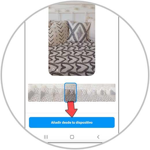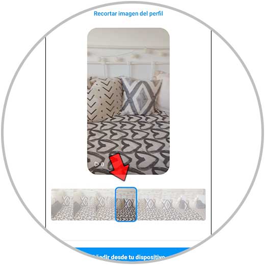 Ahora, para seleccionar la nueva portada selecciona un nuevo clip de vídeo en la barra inferior o selecciona una imagen ya guardada pulsando en “Añadir desde tu dispositivo”. Una vez hayas seleccionado la nueva imagen de portada, pulsa “Listo”: