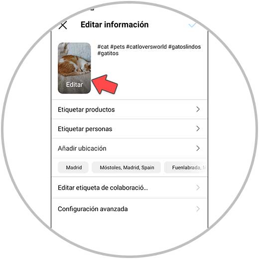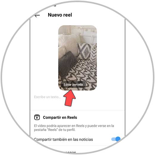 Una vez creado el Reel, en la última pantalla tiene que pulsar sobre la miniatura en “Editar portada”.