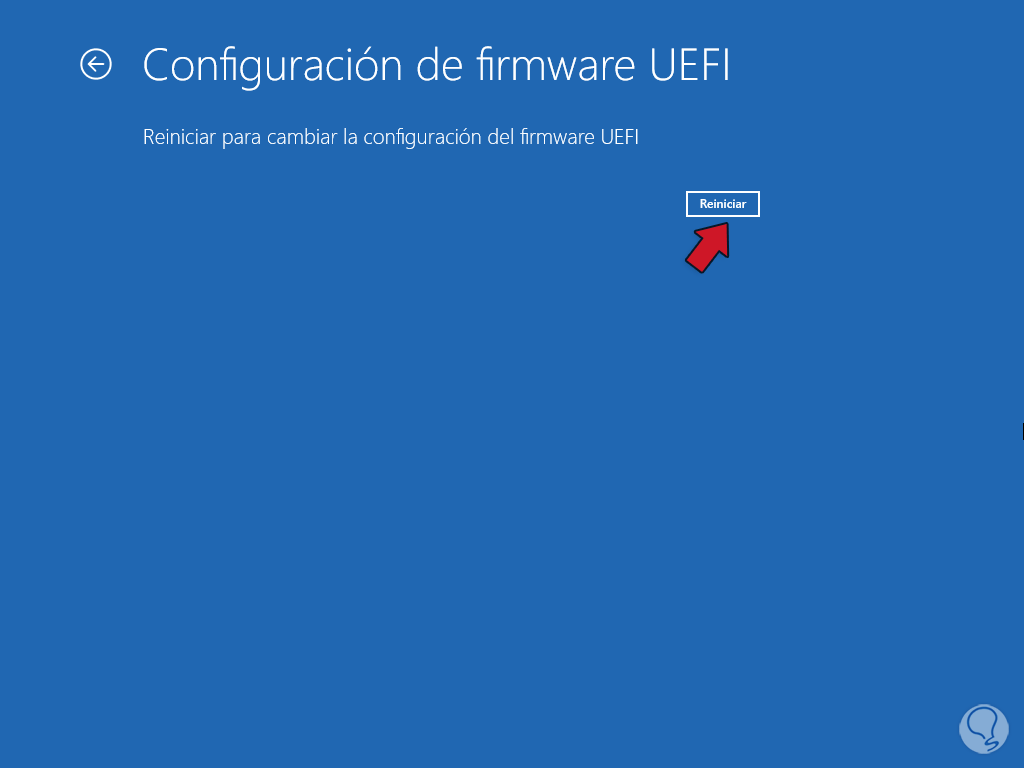 Damos clic en "Reiniciar" para acceder al BIOS o UEFI: