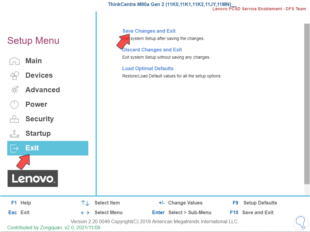 En “Exit” damos clic en “Save Changes and Exit” para aplicar los cambios: