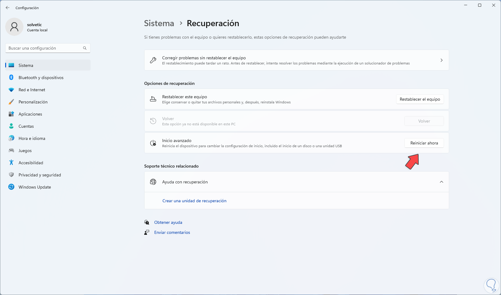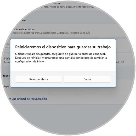 Al dar clic allí veremos lo siguiente. Damos clic en "Reiniciar ahora"