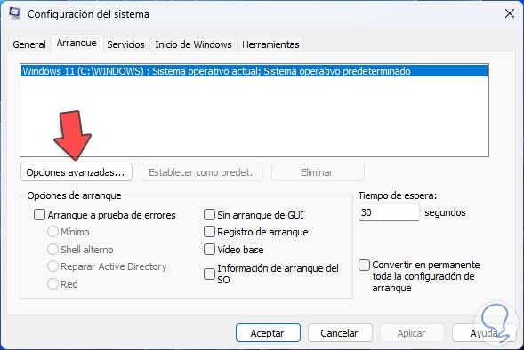 Damos clic en "Opciones avanzadas" para ver la siguiente ventana: