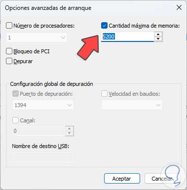 Activamos la casilla "Cantidad máxima de memoria" y automáticamente Windows 11 asignará el total de la RAM disponible en el equipo: