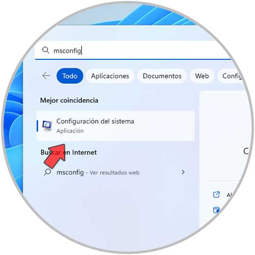 Ahora en el buscador de Inicio ingresamos "msconfig":