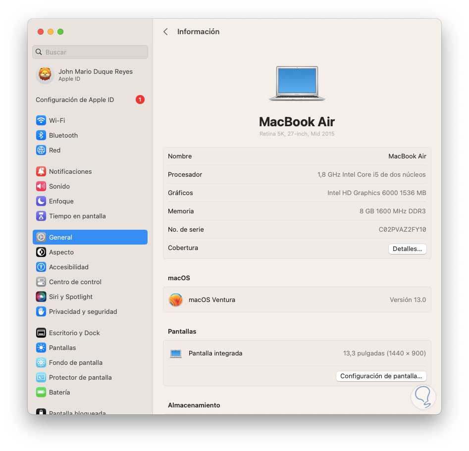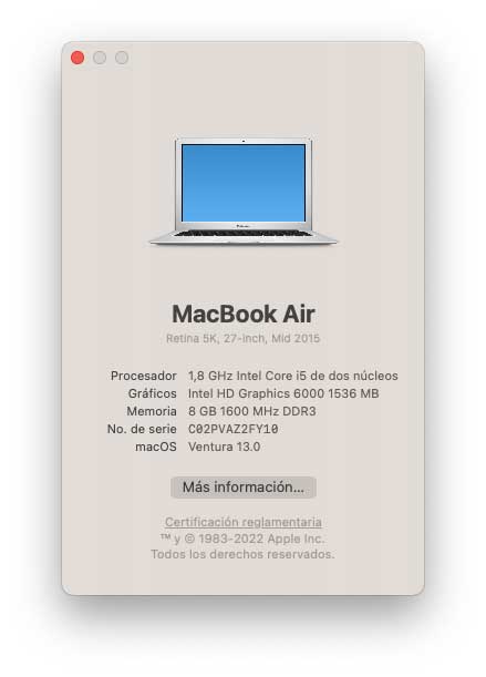 Para el caso de macOS usaremos las opciones integradas, en el menú de Apple damos clic en "Acerca de esta Mac":