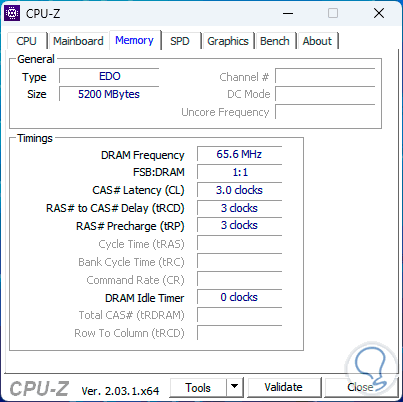 Abrimos la utilidad CPU-Z y en la pestaña "Memoria" encuentras los detalles de esta: