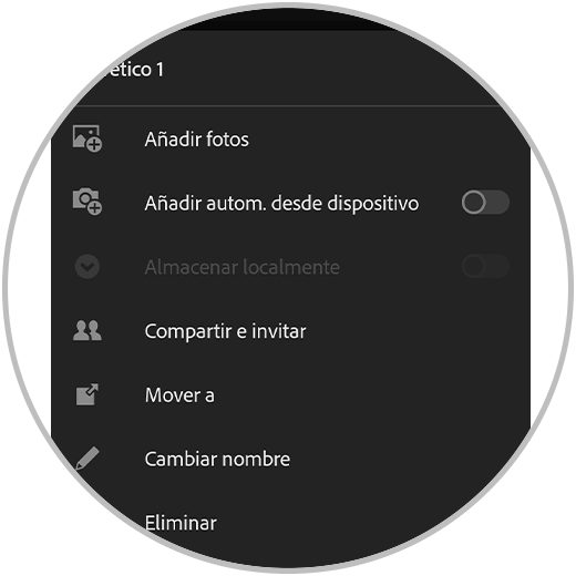 También podemos Añadir fotos al álbum o bien gestionarlo si pulsamos sobre los tres puntos asociados al álbum desde la vista general.