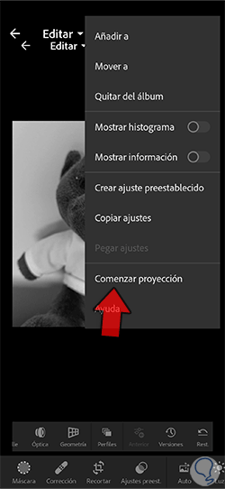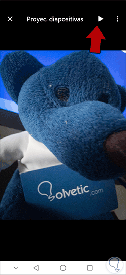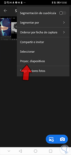 También desde una foto concreta podemos pulsar en su menú de tres puntos superior derecho y elegir la opción de “Comenzar proyección”.