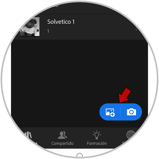 Para añadir fotos dentro de nuestro álbum podemos pulsar en él y dentro veremos las opciones de importación desde archivo o bien desde la cámara directamente.