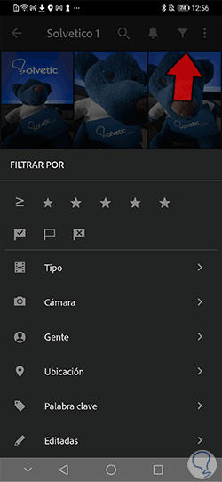 Dentro de un álbum veremos un icono de filtro donde si pulsamos podremos ver diferentes opciones de filtrado que nos ayudarán a configurar la búsqueda.