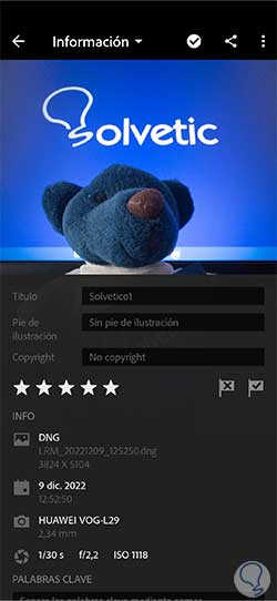 Para acceder a otras opciones de la misma imagen como ver sus datos asociados o incluso puntuar su clasificación, pulsaremos en el desplegable superior.