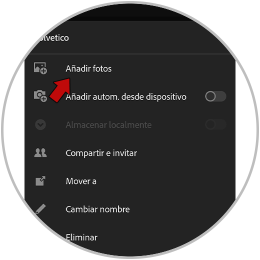 Si pulsas en los tres puntos junto al nombre de cada álbum también podrás encontrar la opción de “Añadir fotos” en el desplegable que aparece.