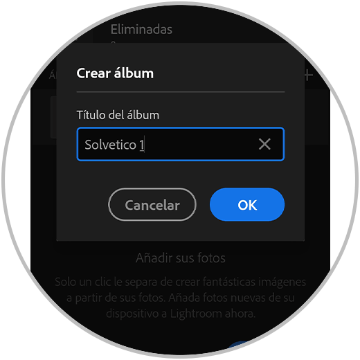 A continuación vamos a dar un nombre a nuestro álbum y lo crearemos usando la opción de “OK”