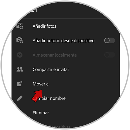 También podemos usar el menú de opciones de un álbum (tres puntos) para elegir “Mover a” y mover un álbum creado a la carpeta que queramos.