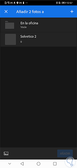 Si entramos dentro de cualquier álbum también nos encontraremos con las opciones de añadir archivos desde cámara o desde el almacenamiento con los iconos correspondientes.