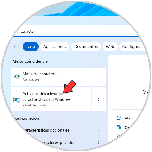 Para lograr esto en el buscador de Inicio ingresamos "características" y luego damos clic en "Activar o desactivar las características de Windows":