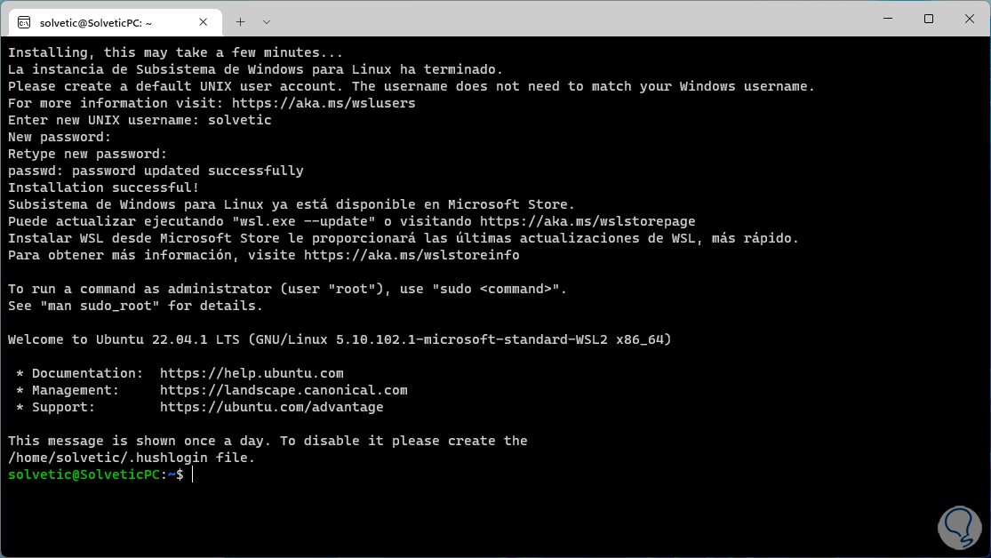 Se habrá instalado Ubuntu en Windows 11, ahora es posible usar comandos de este sistema tal como si estuviéramos en la distribución real: