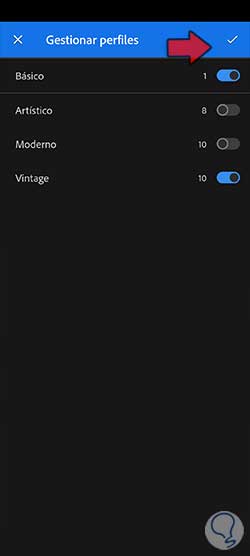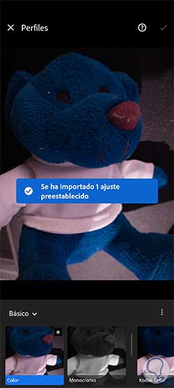 Cuando se importe correctamente si el perfil es compatible aparecerá en nuestro listado completo de perfiles en Lightroom Mobile.