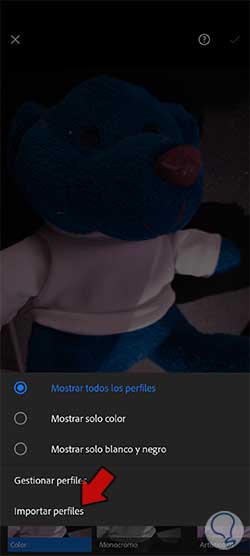 Para importar un perfil que hayamos comprado o conseguido en internet haremos el siguiente proceso. De esta forma si alguien ha creado un perfil de color también podremos usarlo en nuestro Lightroom Mobile y tener así un catálogo más amplio de posibilidades para configurar el color de nuestras fotografías y vídeos.