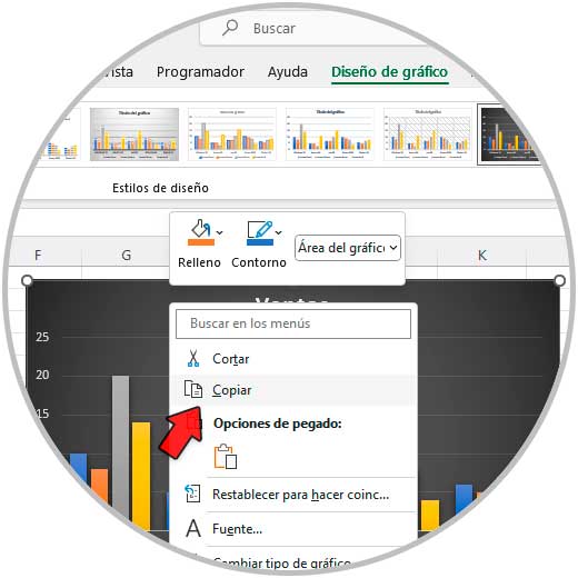 Es posible copiar nuestro grafico para otras aplicaciones, en este caso damos clic derecho sobre el gráfico y seleccionamos la opción "Copiar":