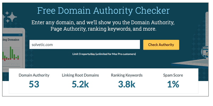 Para poder ver la autoridad de dominio de las páginas web disponemos de diferentes herramientas SEO que se basan en algunos de los mismos principios usados en el algoritmo original de PageRank de Google para valorar esto. Podemos hacer por ejemplo de el siguiente enlace de Moz, desde el que vamos a poder ver de manera gratuita la autoridad de una página o una web 5 veces al mes.